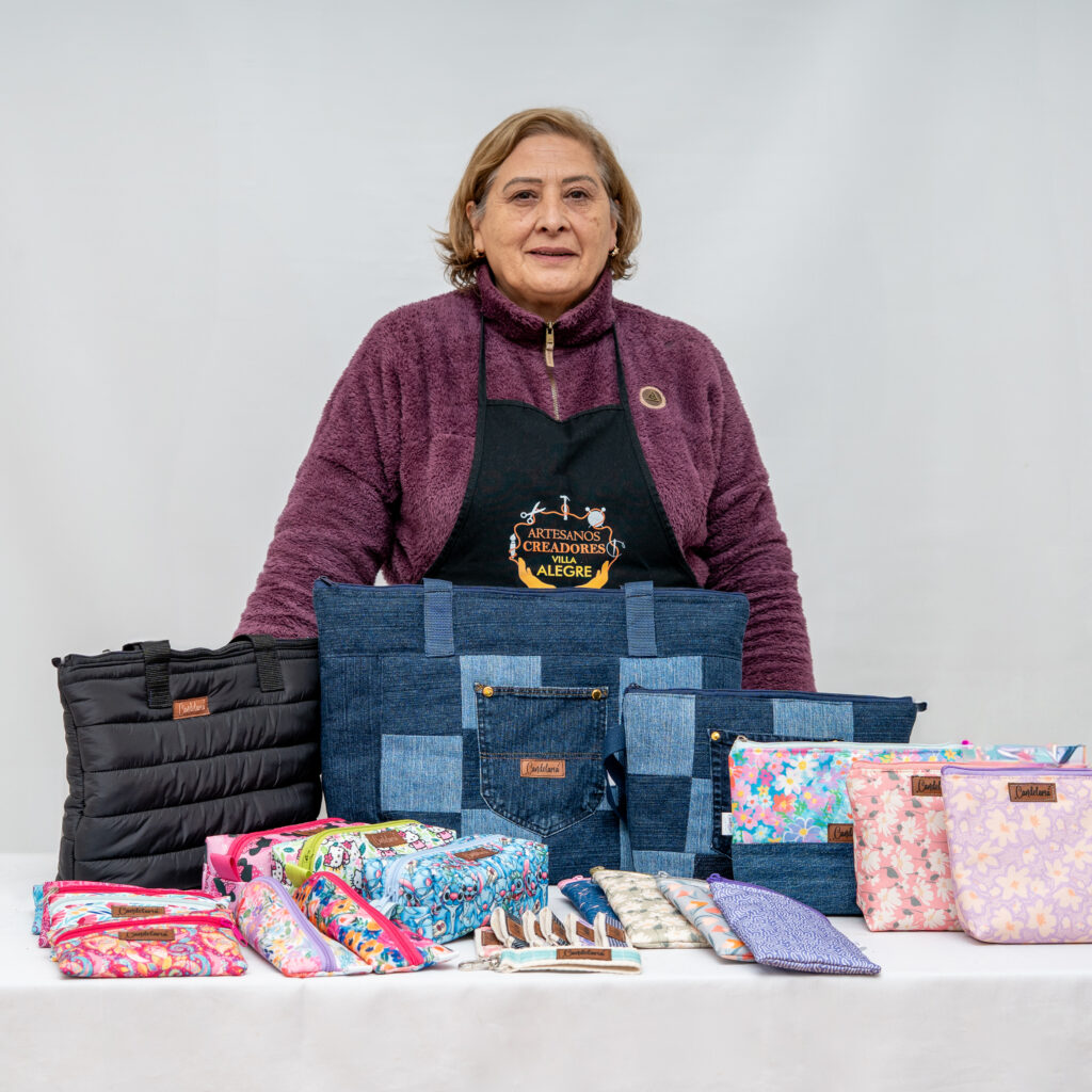 Este oficio nació como una forma de terapia para mí. Empecé confeccionando bolsos y estuches con mezclilla reciclada, y poco a poco fui encontrando en la costura un espacio de calma, creatividad y expresión. Aprendí el oficio desde muy joven, ya que estudié confección en vestuario industrial y deportivo, pero con los años he seguido aprendiendo de manera autodidacta, explorando nuevos patrones y formas de crear. Hoy diseño mis propias telas y las transformo en bolsos, estuches, colets, monederos, individuales y más. Cada pieza que hago lleva parte de mi historia, mi tiempo y mis ganas. Trabajo tanto por encargo como con un pequeño stock que llevo a ferias de emprendedores, donde comparto lo que hago con mucho cariño.