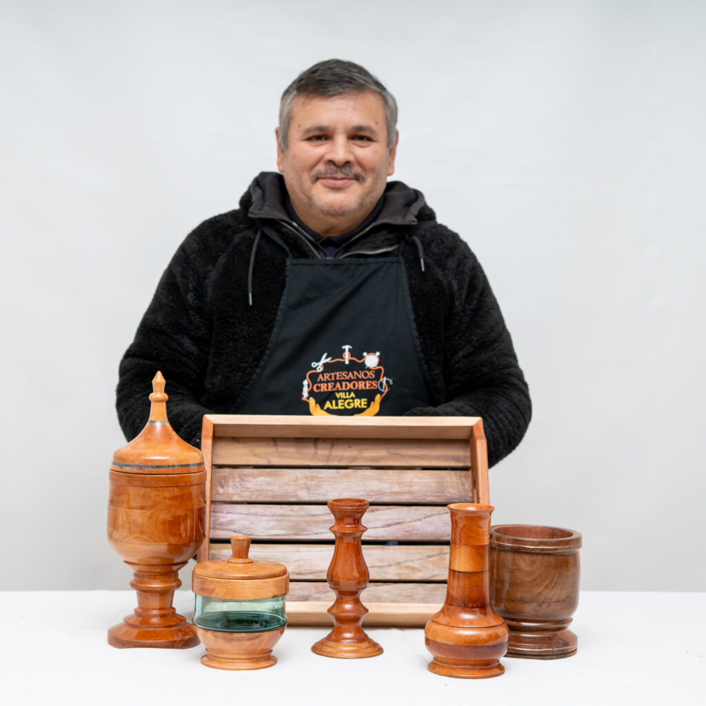 Este talento lo heredé de mi padre, quien a su vez lo recibió de mi abuelo. Mi abuelo trabajaba la madera fabricando yugos para las carretas de trabajo del carbón, y mi padre continuó la tradición elaborando marquesas talladas y estribos. Desde pequeño me sentí atraído por este oficio, y con el tiempo descubrí mi propia pasión: el torno y el reciclaje de maderas.