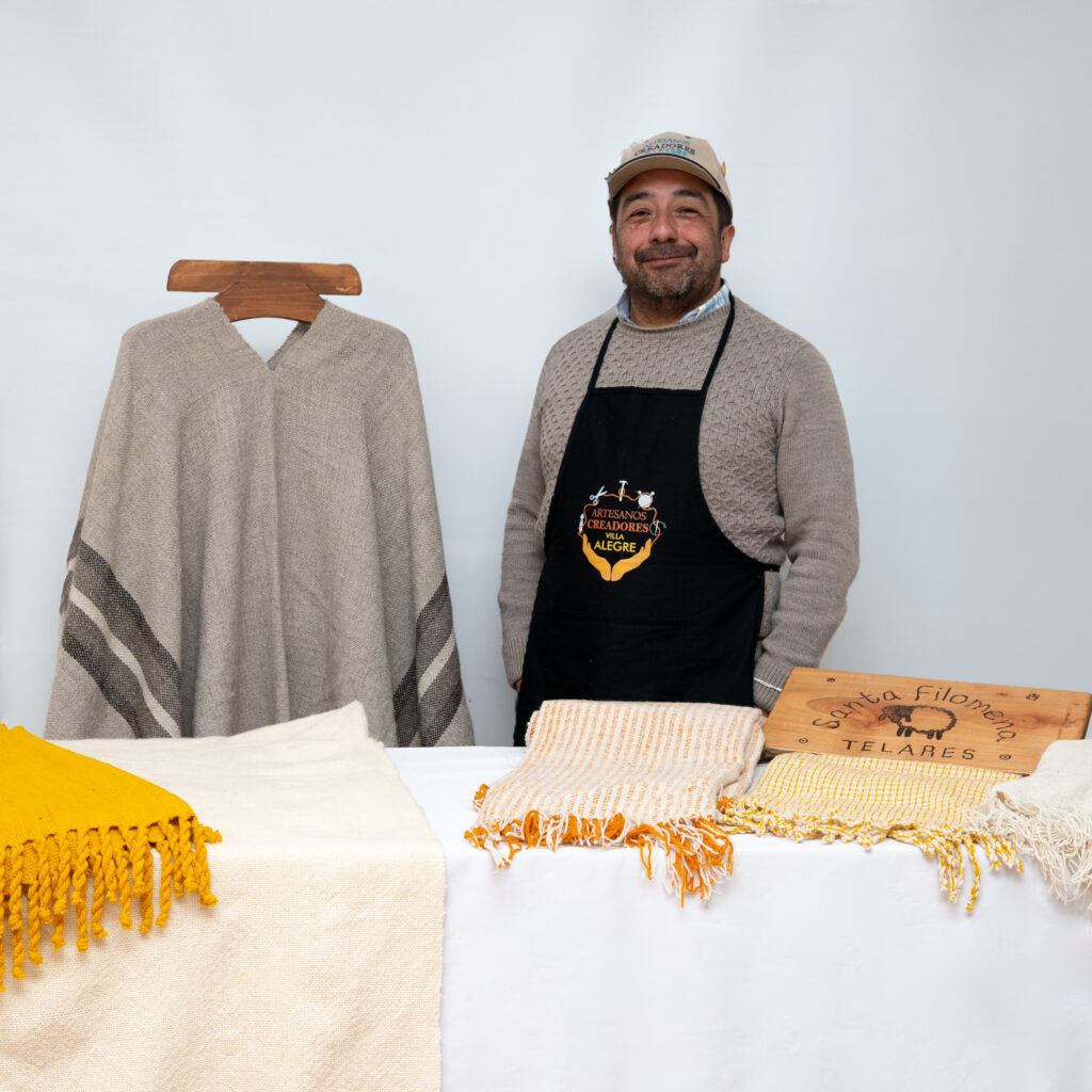 Mi trabajo es artesanía textil realizada en telar de pedal, especializándome en mantas, ruanas, pieceras, echarpes y textiles decorativos. Mi historia en este oficio comenzó hace aproximadamente 16 años, en 2009, cuando inicié la crianza de ovejas. Me encargaba de todas las labores propias de su cuidado: alimentación, desparasitación, esquila, entre otras. Gracias a ello, contaba con abundante lana que solía regalar a artesanos conocidos.